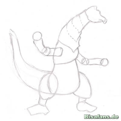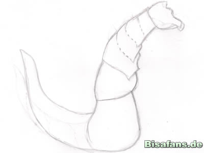 Jetzt den Schwanz. Ein paar Linien, wie im