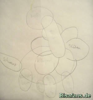 und Ovale, damit eine grobe Skizzierung entsteht. Die Namensgebung