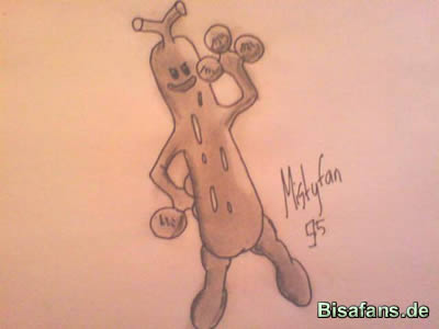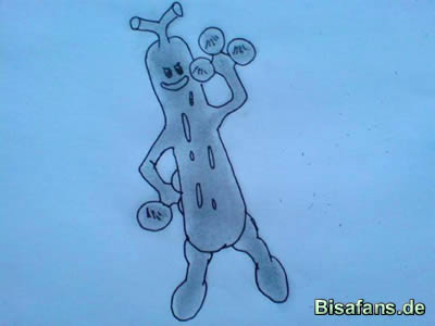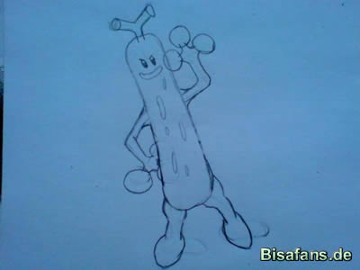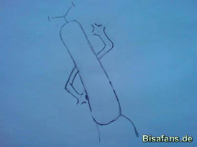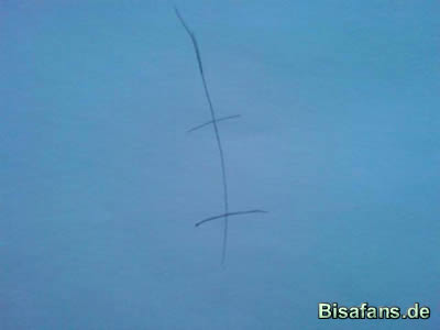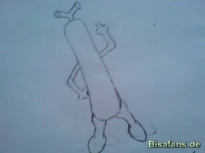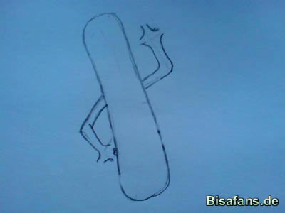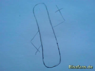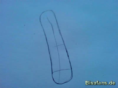 Zuerst müsst ihr einen leicht gebogenen Strich zeichnen der einen quer Strich in der Mitte und einen Fast am Ende hat. (Siehe Bild oben)