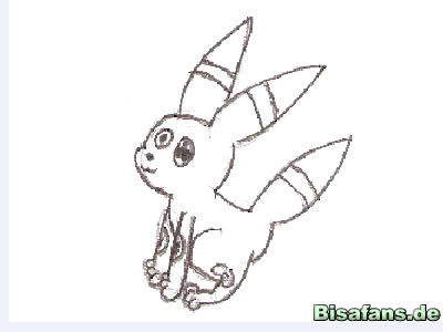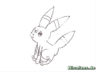 Jetzt ein paar Details. Augen ausmalen aber Lichtpunkte lassen. Die Punkte im Gesich und am Bein und die Streifen am Ohr und am Schwanz.