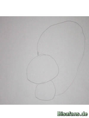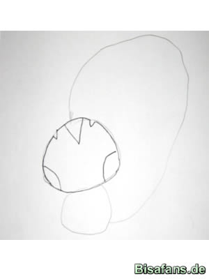 auch ein bisschen gebogen. In der Mitte vom Kopf malt ihr oben auch
