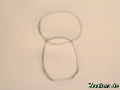 Dann malt ihr ein zweites Oval darunter.Die beiden Ovale müssen sich überschneiden.
