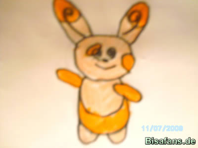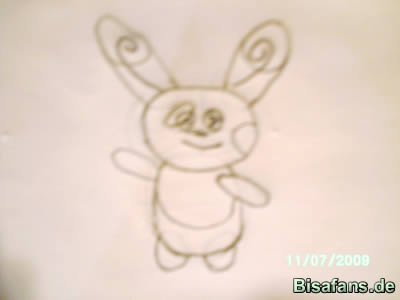 Jetzt kommen die Einzelheiten.Die Ohren bekommen jeweils einen Kreis,auf den Bauch kommt ein Halbkreis und es kommen zwei Flecken auf Pandirs Gesicht.