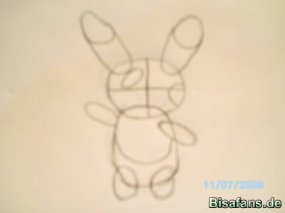 Dieser Schritt ist weniger schwer.Es kommen lediglich die Hilfslinien am Kopf hinzu.