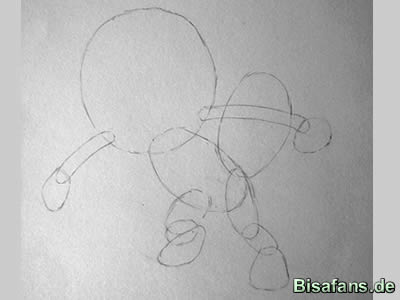 länglicher sein. Für die Beine malt ihr nun ebenfalls zwei Ovale an
