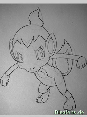 In diese Schnauze malt ihr zwei längliche Punkte, die die Nase darstellen. Fahrt jetzt auch noch die Konturen des Körpers wie in meinem Bild nach. Das sollte nicht allzu schwierig sein.