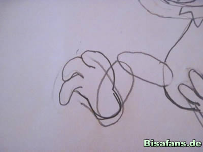 Als nächstes malt ihr den Schwanz. Bitte schließt ihn aber noch nicht an der Schwanzspitze!