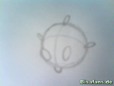 Diese zeigen die Blickrichtung an. Oben auf das kleine Oval kommen