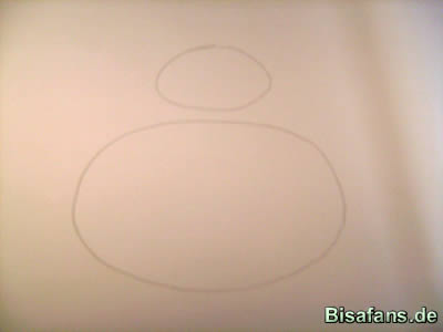 Zeichnet zuerst zwei Kreise übereinander. Sie dürfen sich nicht berühren und der untere muss größer sein.