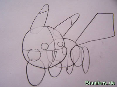 Vorderbeine zeichnen. Diese sind erst einmal Eier, wobei das linke