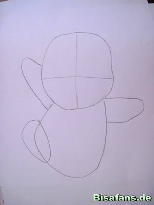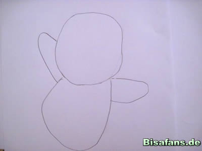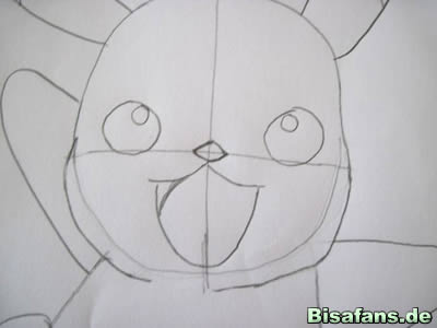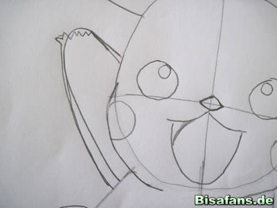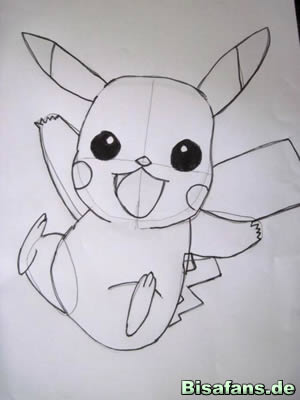 Den rechten Arm von Pikachu malt ihr etwas breiter als die Hilfslinien.
