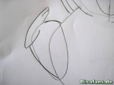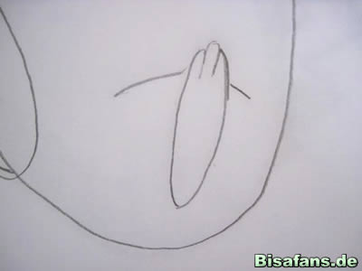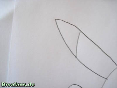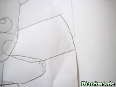 Dann malt ihr den Schweif von Pikachu. Ich hab ein Blatt daneben gelegt, weil der Platz nicht reichte.
