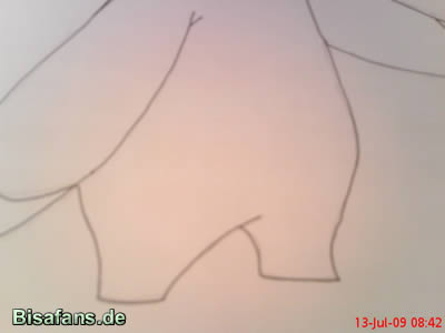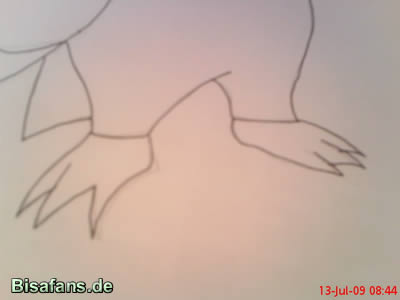 auf dem Bauch, die zwei Linien für den Schwanz usw.