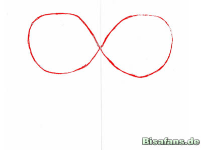 Zuerst eine liegende Acht, aber Vorsicht: Die Schnauzen sind etwas zugespitzt und der Hinterkopf ist abgeflacht.