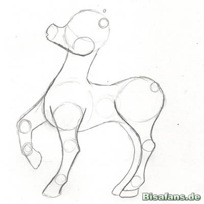 dann eine Linie von der Schnauze zum Unterkieferkreis. Nun zu den