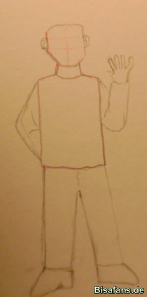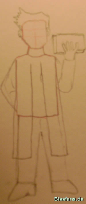 Hand zeichnest du am besten vorher eine Röhre für den Oberarm und