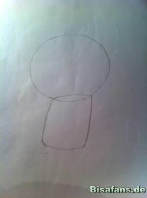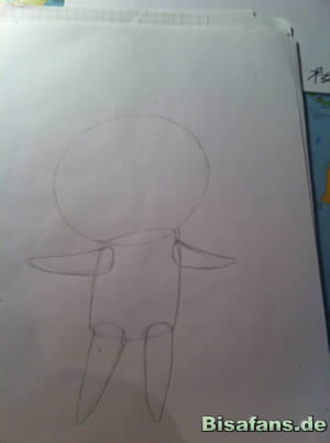 Zuerst zeichnet ihr den Kopf und den Körper