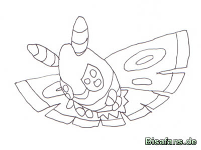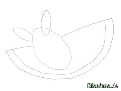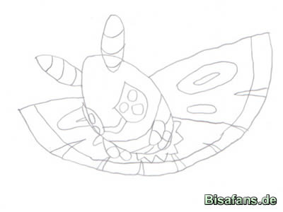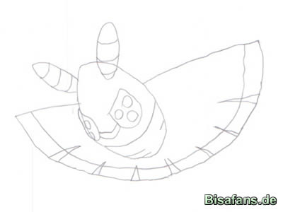 Beginnt als erstes mit einem Oval, zeichnet dann die Flügel und Fühler ein.