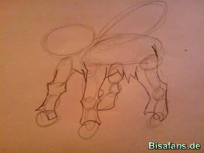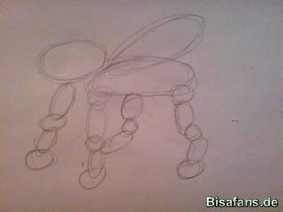 Nun kommt der vordere Körper. Dazu, wie immer, um die vorgezeichneten Kreise und Ovalen zeichnen.