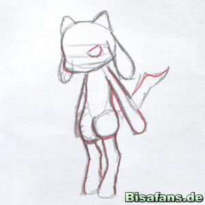 also um das Skelett herum zu zeichnen. Achtet darauf, dass die Füße