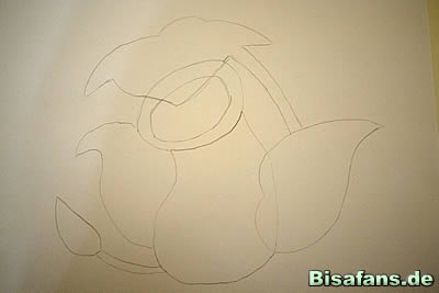 fällt, erstmal nur ein Oval zeichnen, links ran die Spitze, und