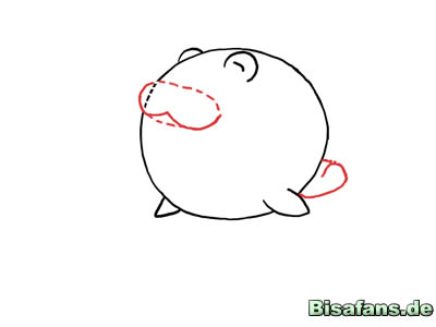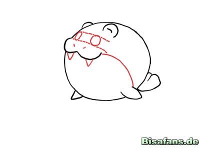 ich noch eine runde Linie vom Mund aus zur rechten Pfote zeichnen.