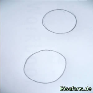 Zuerst solltet ihr für den Kopf und den Körper zwei Kreise malen.