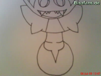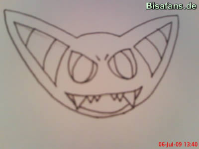 und den ebendfalls großen Mund, plus die Zähne. Zeichnet wenn ihr