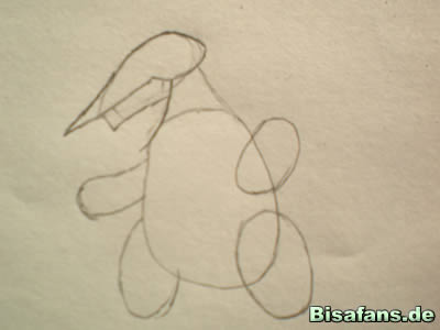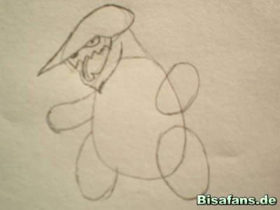 ein Rechteck für den Oberkiefer und vorerst einen Strich für den