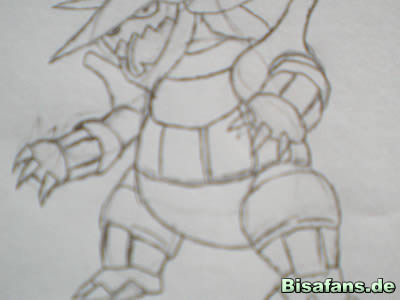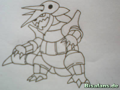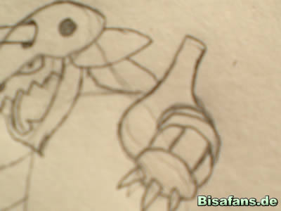 Kopfpanzerung sieht ähnlich wie ein Tropfen aus, nur dass sie dort