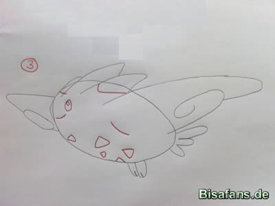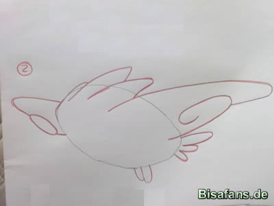 nicht vollständig zu sehen.) und den Schwanz. Dann malst du die