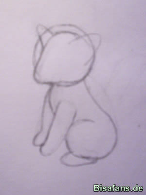Kopf auch schon das erste Ohr plazieren, welches ebenfals spitz