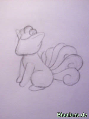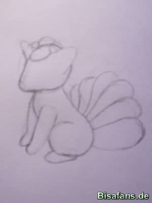 beginnt und in die Linie von Vulpix' Hintern übergeht. Die Beine