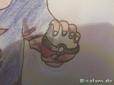 Pokéball sieht man ein kleines Stück des Unterarms.