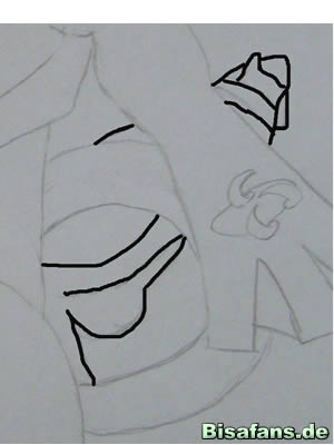 drunter die fast bis zu seinem Körper. Danach noch eine Linie die