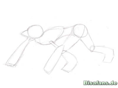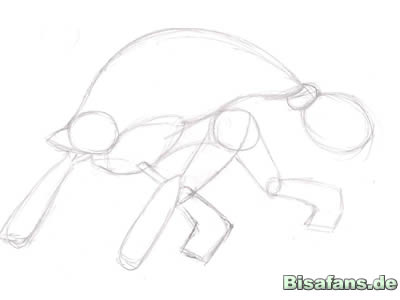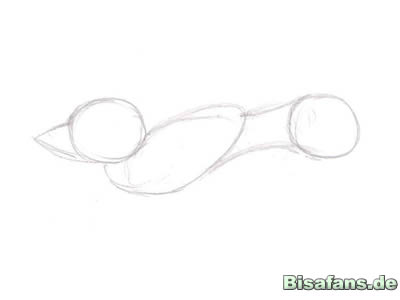 Zeichnet einen grossen Kreis fuer den Kopf und noch ein kleines
