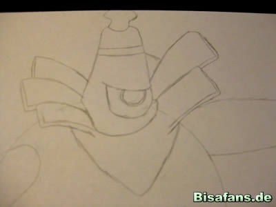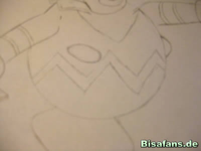Nun zum Kopf. Malt zuerst das V auf der