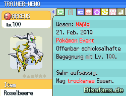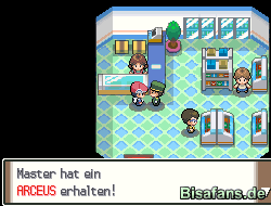 - Spreche den grün gekleideten Mann beim Tresen an - er wird dir Arceus überreichen.
