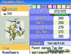 - Tipp der Game Master: Sollten dir die Statuswerte und das Wesen deines Arceus nicht gefallen, kannst du an dieser Stelle das Spiel ausschalten und dir Arceus noch einmal im Pokemon Markt abholen. Es wird dann andere Statuswerte haben. Mehr zum Wesen von Pokémon gibt es übrigens im Wesen-Spezial bei uns!