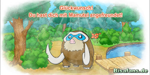 Nach der Eingabe des Passworts folgt ein kleines Suchspiel, bevor Mamutel auf den DreamWorld Account übertragen wird. Mit der nächsten Spielsynchro wird Mamutel dann auf den Spielstand von Pokémon Schwarz/Weiß übertragen und kann in der Kontaktebene abgeholt werden. Falls man auch bei der Traumeiche ein Pokémon erhalten haben sollte und beide mit einem Traumball fangen will, sollte man nach dem Fangen des ersten Pokémon in der Kontaktebene diese verlassen und erneut betreten. Dann bekommt man erneut einen Traumball ;)