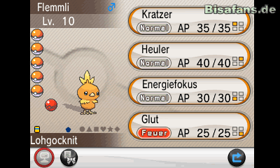 Pokédex-Einträge von Flemmli (unterer Bildschirm)