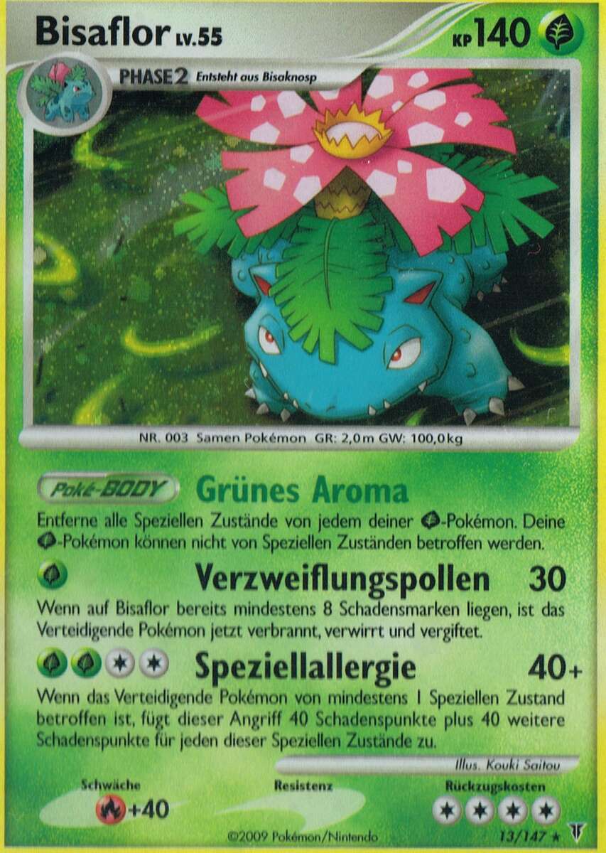 - G Die Blume auf dem Rücken dieses Pokémon absorbiert das Sonnenlicht und wandelt es in Energie um.
