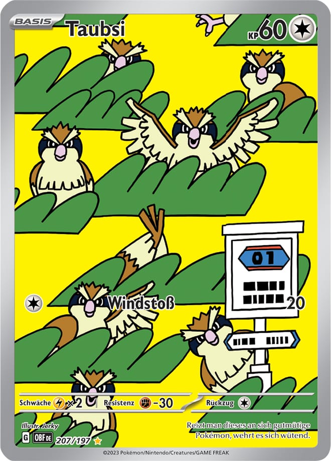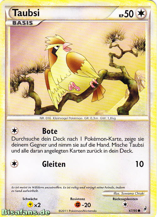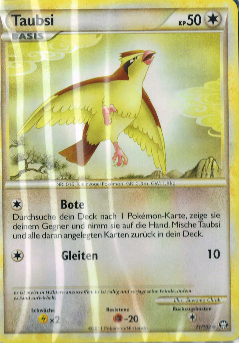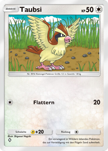 - RB Ein vorwiegend in Wäldern lebendes Pokémon, das zur Verteidigung mit den Flügeln Sand aufwirbelt.