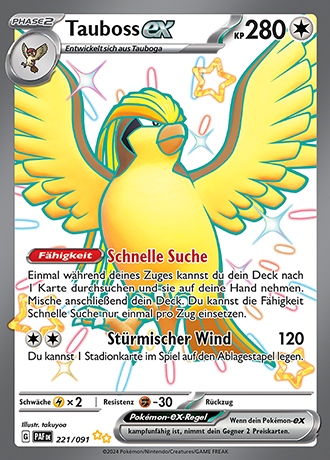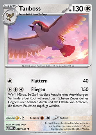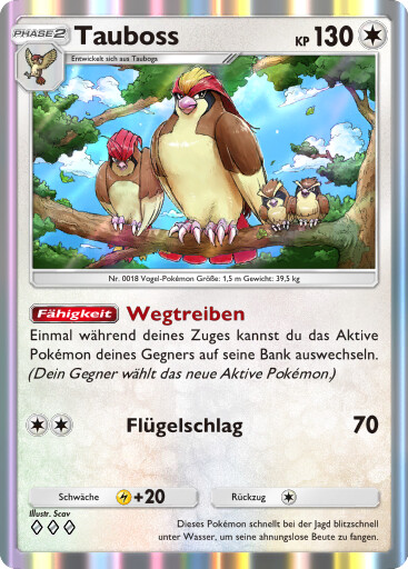- GO Dieses Pokemon hat ein wunderschönes, glänzendes Gefieder. Viele Trainer sind von der auffälligen Schönheit seines Federkleids begeistert, sodass sie Tauboss als ihr Pokémon wählen.