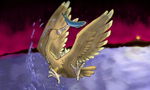 - G Es fliegt steil empor und stürzt sich anschließend herab, um seine Beute zu erlegen.