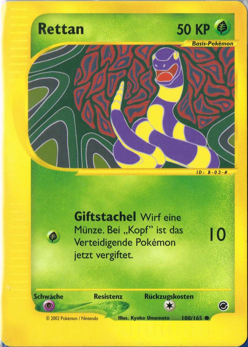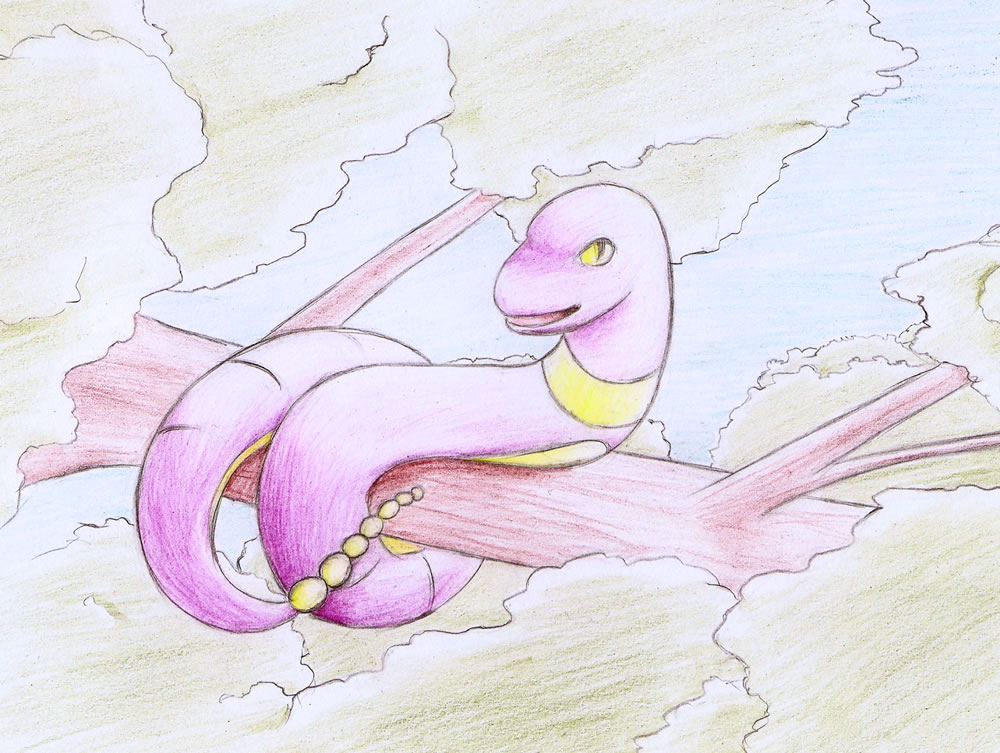 - G Mit dem Alter wird der Körper dieses Pokémon immer länger. Es schläft um Äste gewickelt.