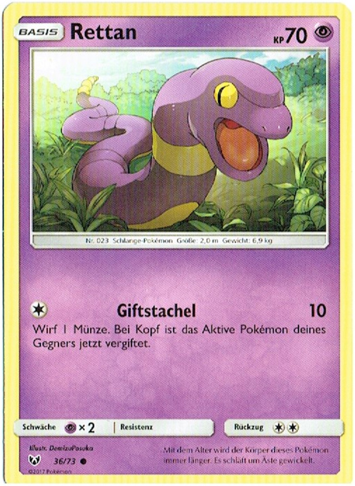 - S Dieses Pokémon schlängelt sich leise durchs Gras und sucht ständig nach den Eiern von Vogel-Pokémon, um diese aufzufressen.
