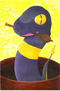 - S Es versteckt sich stets im Gras. Bei Geburt hat es noch kein Gift. Sein Biss tut weh, ist aber harmlos.