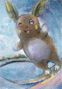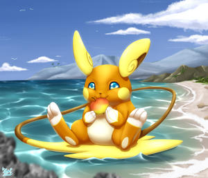 Die rötliche Abendsonne neigte sich langsam über den Horizont, während Raichu eine letzte Runde drehte. Mit konzentrierter psychischer Energie in seinem Schweif ließ es sich vom regen Wellengang leiten und sauste mit sicherem Stand über das Wasser. Auf ausschweifende Tricks verzichtete es jedoch aufgrund seiner etwas nervösen Begleitung, die vorsichtig hinter seinem Bein hervorlugte.