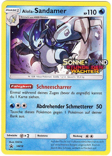 Dieses Pokémon steht gerne neben Vulnona-Alola im Hagel. Durch den Schneescharrer erhält es nämlich im Hagel die doppelte Initiative und läuft Amok. Eisenschädel kümmert sich um alle Feen, Eisspeer ist genau und kann selbst Pokémon, die sich hinter einem Delegator verstecken, treffen und ausschalten, doch Eiszapfhagel verursacht gleichmäßig Schaden. Der dritte Slot ist davon abhängig, was für ein Item gespielt wird. Erdbeben z.B. macht sich gut zusammen mit dem Terrium Z, um für die Mono-Eis-Kombo gefährliche Feuerpokémon zu eliminieren. Mit Steinhagel kann man dank der hohen Initiative nach Flinches geiern. Delegator kann einem bei einer guten Prediction große Vorteile verschaffen und vermehrt Druck auf den Gegner aufbauen. Schwerttanz übt ähnlich Druck aus, nur kann Alola-Sandamer bereits mit neutralen Treffern OHKOs einfahren. Auroraschleier ist seltener, da es im Gegensatz zu seinem Gegenstück Vulnona-Alola eine eher offensivere Rolle spielt, ist aber machbar. Schutzschild ist selbsterklärend.